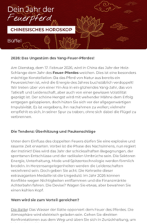 1. Personalisierte Vorhersagen: Erhalten Sie einen detaillierten Überblick darüber, was das Jahr 2026 basierend auf Ihrem chinesischen Sternzeichen für Sie bereithält.
